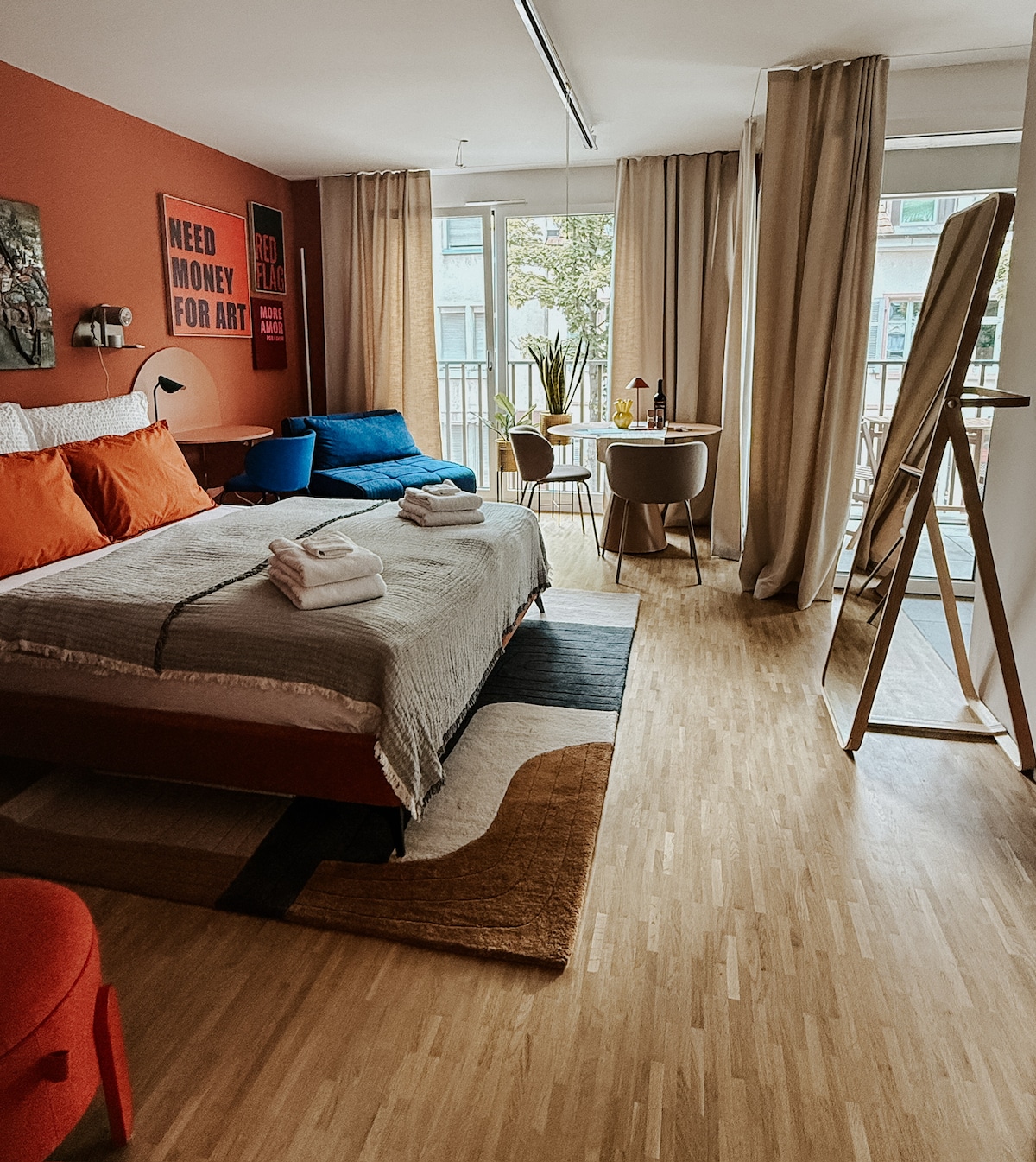 Sentiti a casa in questo incantevole appartamento nel cuore della città di Basilea, proprio accanto al famoso fiume Reno. L'appartamento vintage si distingue per il suo design moderno e un patio incredibilmente esclusivo con una splendida vista sul fiume Reno. Il centro storico della città dista solo pochi passi. Appartamento vintage di→ 70 mq Posizione →centrale Camera da→ letto, soggiorno e sala da pranzo, bagno Patio →ampio e confortevole →2 comodi divani letto Angolo cottura→ completamente accessoriato Macchina da caffè→ NESPRESSO