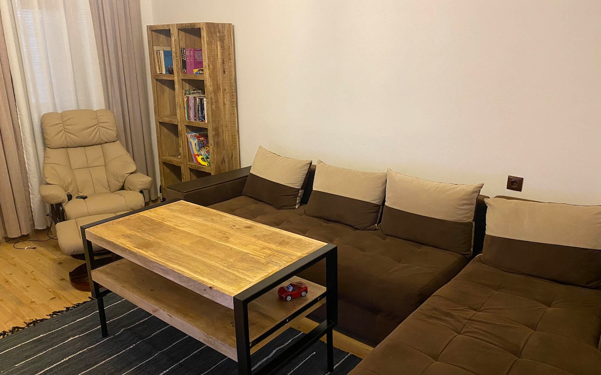 Ti presentiamo un meraviglioso appartamento ai piedi del monte Pirin, nella pittoresca cittadina di Gotse Delchev. Siamo in centro città, vicino a negozi, locali. L'appartamento è composto da due camere da letto, una - una camera da letto e un letto a castello, l'altra una camera da letto e un divano letto, un piccolo soggiorno con angolo cottura. L'appartamento è dotato di aria condizionata, TV in ogni camera, internet. Tutto il necessario per il tuo soggiorno tranquillo è disponibile. C'è la possibilità di un box per bambini!