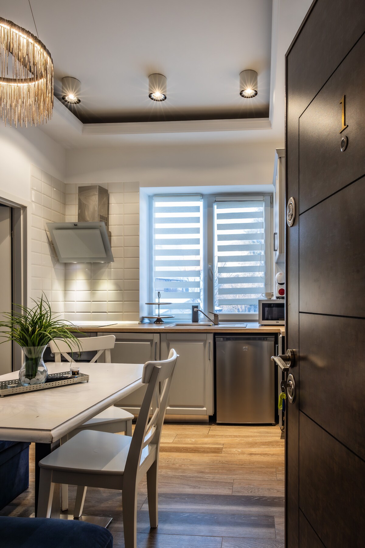 Rilassati in questo spazio tranquillo ed elegante! L'appartamento è situato al piano terra di una casa, con ingresso indipendente dalla scala, dispone di un ampio soggiorno con TV LG a led da 65", una cucina completamente arredata, 2 camere da letto con letto matrimoniale ciascuna e 2 bagni (uno con ampia doccia). Altri servizi: aria condizionata, riscaldamento a pavimento. Il parcheggio è gratuito e sicuro sulla strada di fronte alla casa. Nelle vicinanze: piccolo mercato alimentare, negozio Lidl. A 1,5 km dal centro città.