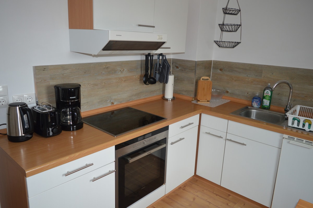 Sentiti come a casa nel nostro accogliente appartamento vicino alla spiaggia e alla foresta e non lontano dal centro di Flensburg e dal confine con la Danimarca. L'appartamento è situato nel seminterrato di una casa unifamiliare in una posizione tranquilla con vista su un giardino simile a un parco L'appartamento dispone di una cucina ben attrezzata, soggiorno e zona pranzo, camera da letto con letto matrimoniale e un bagno con vasca e servizi igienici separati. Terrazza esterna coperta e in legno Wifi veloce e Smart TV 4K