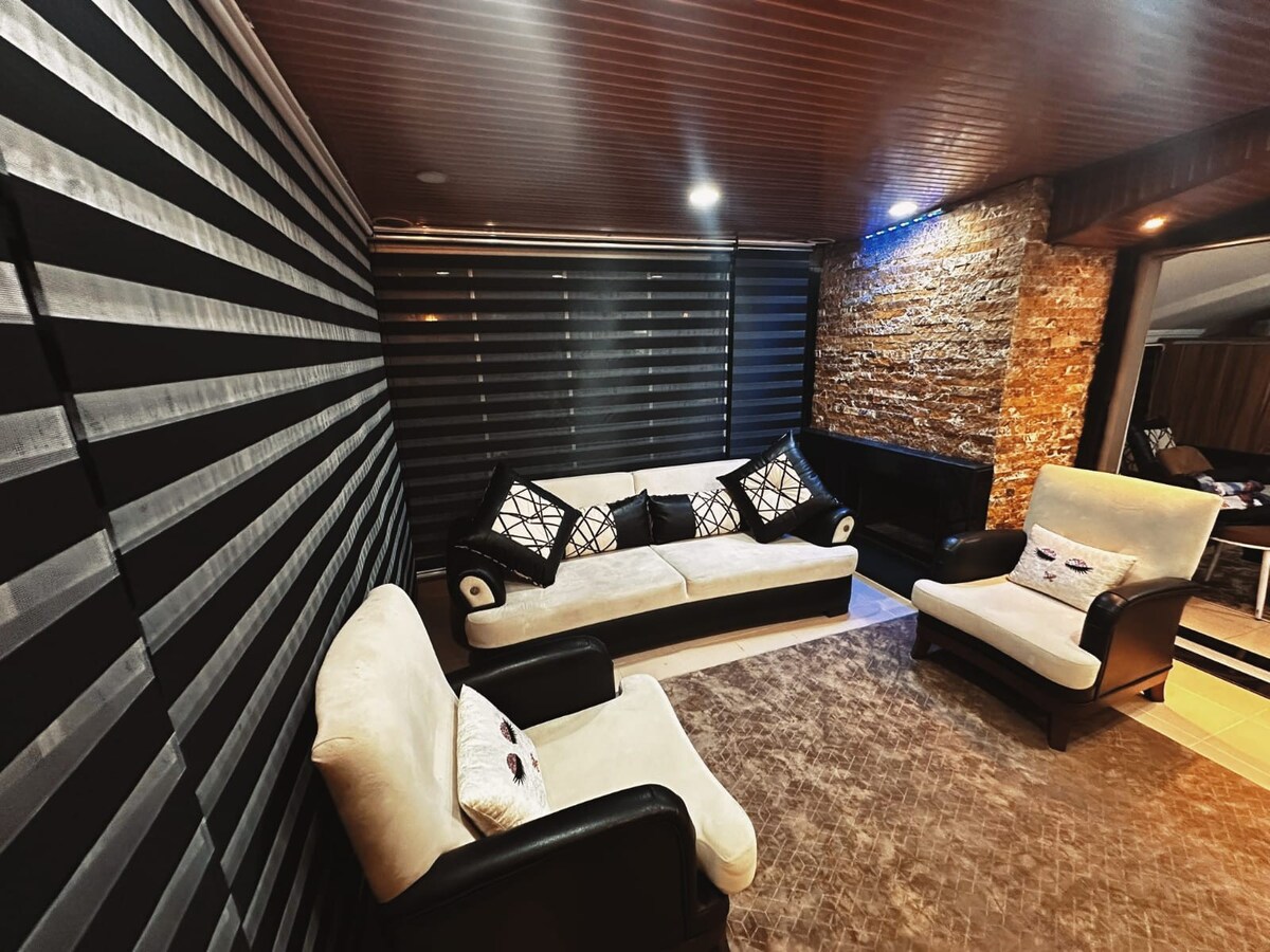 House is 327 m2 with heated swimming pool. 2 independent floors. Ideal for 2 families. 4 bedrooms, 2 livingrooms, 1 dining room, 1 common room. Space, cutlery and bedding for 15 adults, 2 children and 2 cradle. 2 tea kitchens and a large kitchen. 1 guest toilet, 2 bathrooms both with spa. Electric underfloor heating. Air conditioning. Fireplace. 15-20 minutes by car from the beach. 25 minutes to the big Migros Shopping mall. 35 km from airport. Overlooking the Mediterranean Sea and Antalya.