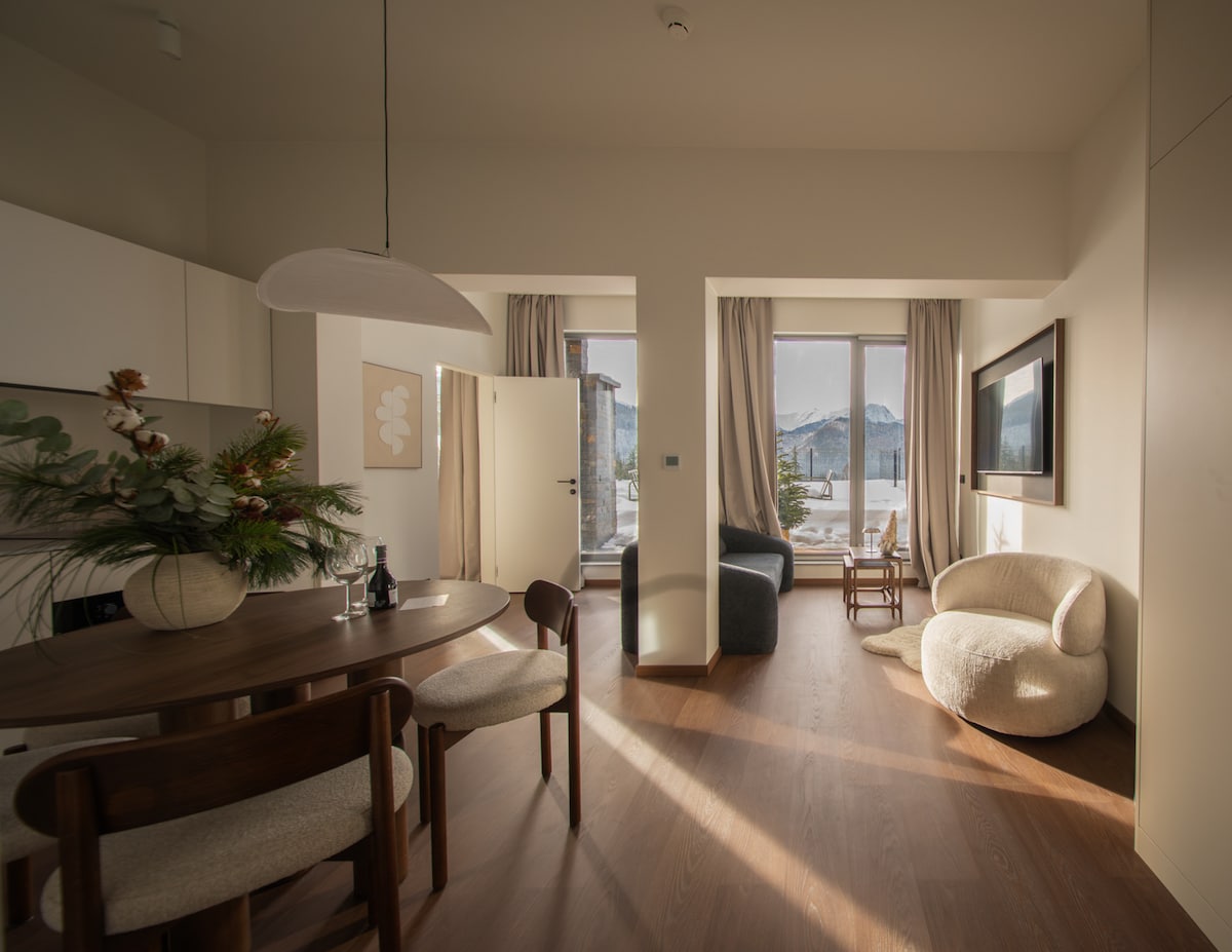 The Świstak / Kozica apartment is a stylish studio apartment of 44 m², perfect for 4 people. It features a spacious living room with a sleeping area, a well-equipped kitchenette, and a bathroom. The apartment also has a private garden, providing the opportunity to enjoy relaxing moments outdoors. Guests have access to numerous amenities, including a billiards room, children's play area, barbecue grill, outdoor playground, and a well-developed spa area, both indoor and outdoor.