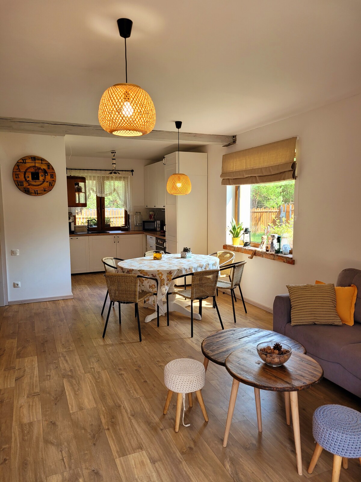Benvenuti nel nostro accogliente appartamento Si trova in un paesino tranquillo a pochi metri da un pittoresco lago. L'arredamento interno combina comfort moderni con un fascino naturale dettagli in legno, decorazioni accuratamente selezionate e una calda atmosfera creano un luogo unico di relax Grandi finestre che lasciano entrare molta luce e offrono una splendida vista sulla natura circostante. ❗️ uso della sauna e della vasca idromassaggio 300 zloty all'arrivo per il legno️
