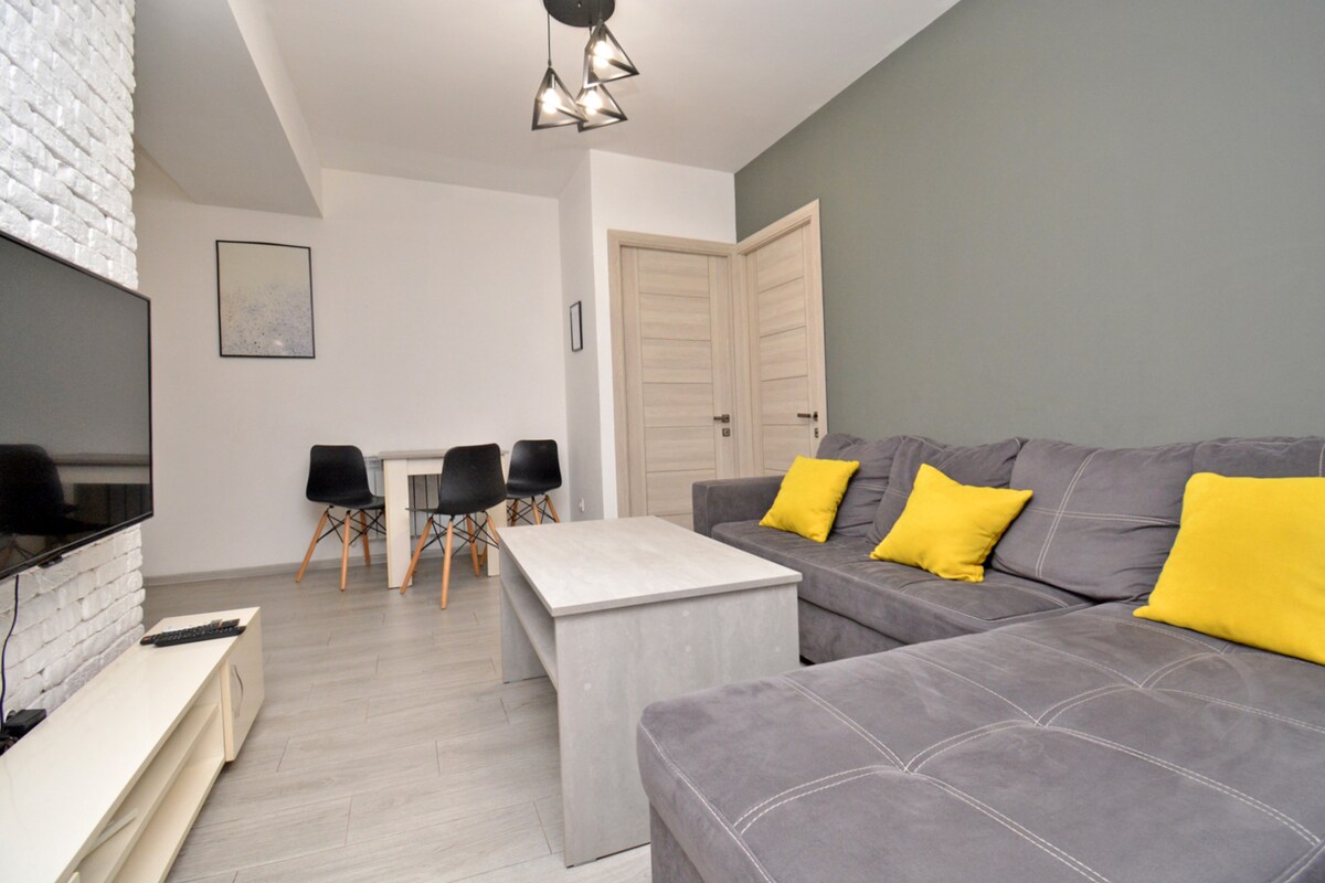 Questo appartamento con 2 camere da letto di 70 m² si trova al 3° piano dell'edificio, nel centro della città. Nell'edificio è presente anche un nuovo ascensore. Tutto è nuovo nell'appartamento. Ci sono due smart TV, una cucina con tutti i comfort, ferro da stiro, asciugacapelli, lavatrice e così via. Forniamo anche lenzuola, asciugamani e ogni articolo per l'igiene personale.
