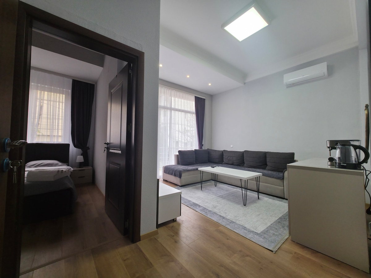 Moderno appartamento situato nel cuore di Prishtina. Sistemazione self catering con aria condizionata e WiFi gratuito. Dotato di pavimenti in piastrelle di parquet, cucina attrezzata, smart tv, smart tv, bagno privato con asciugacapelli.
