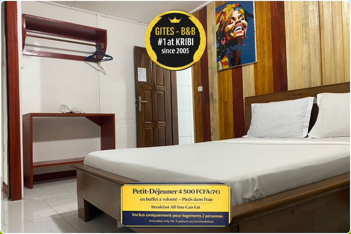 Sentirsi a casa altrove. Appartamento arredato con 1 camera da letto per 2 persone (possibilità di offrire un materasso in più per 2 persone in più a pagamento), ideale per un weekend per coppie, all'interno di una residenza privata di 1500 m ² composto da 4 appartamenti fronte mare a Kribi, Cameroon. Possibilità di prenotare l'intero residence (secondo disponibilità), per questo contattateci. Capacità totale di alloggio del residence residence è di 12 persone.