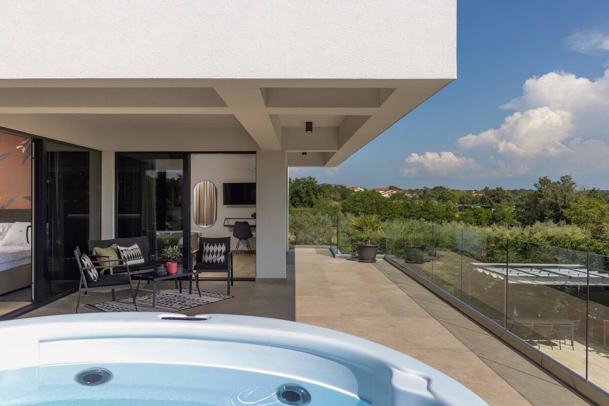 Villa Villetta – Affascinante rifugio istriano Perfetta per una famiglia con 2+2 bambini, Villa Villetta offre 1 camera da letto, un bagno, un soggiorno con un divano letto matrimoniale e una cucina completamente attrezzata. Goditi la tua piscina privata di 15 m², l'idromassaggio, la terrazza solarium, l'area lounge e barbecue, il tutto in un giardino splendidamente curato. Parcheggio privato incluso. Rilassati, distenditi e sfrutta al massimo la tua vacanza in Istria!
