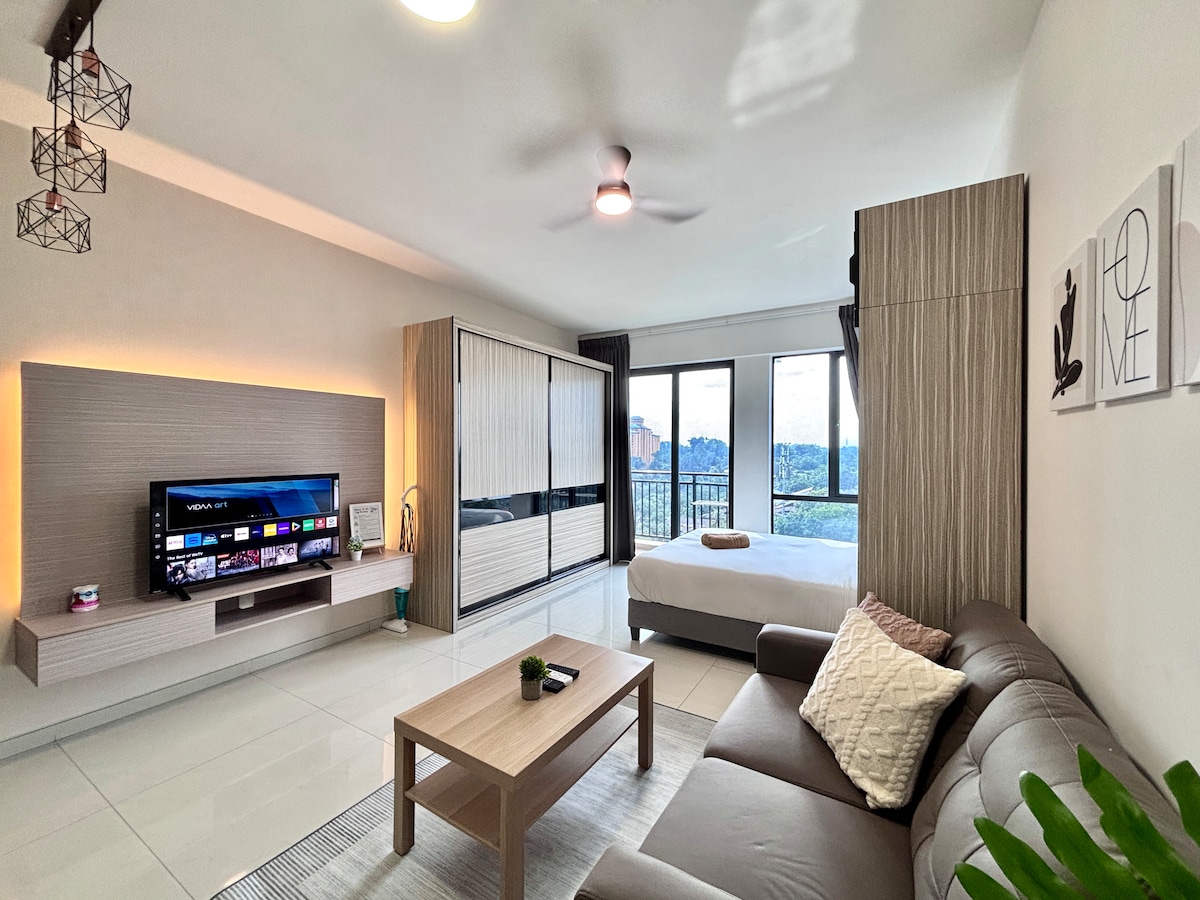 ✨ Kick back and relax in this newly refurbished calm, stylish space. ✨ Chic studio retreat for 2 - steps from Paradigm Mall! Enjoy a separated bedroom, private balcony, and modern comforts, all while having shopping, dining, and entertainment right at your doorstep. Easy access to Johor Bahru city & other township around Skudai area and the Singapore causeway makes this the perfect base for work or play!