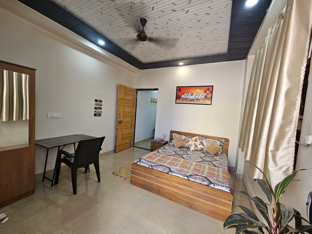 Ti diamo il benvenuto a Studio By Trovero Situato nel cuore di Greater Noida, vicino a Expo Mart. Cosa ti piacerà: Balcone ✔ privato – Goditi la vista ipnotica sulla casa a schiera Posizione ✔ privilegiata – Vicino alle principali attrazioni e ristoranti. Comfort ✔ moderno: uno spazio splendidamente arredato con un letto comodo, comodi posti a sedere e arredi eleganti. Cucina ✔ completamente attrezzata: prepara i tuoi pasti preferiti con facilità. WiFi ✔ veloce e Smart TV: rimani connesso e divertiti. Atmosfera ✔ serena: un tranquillo rifugio lussuoso e privato