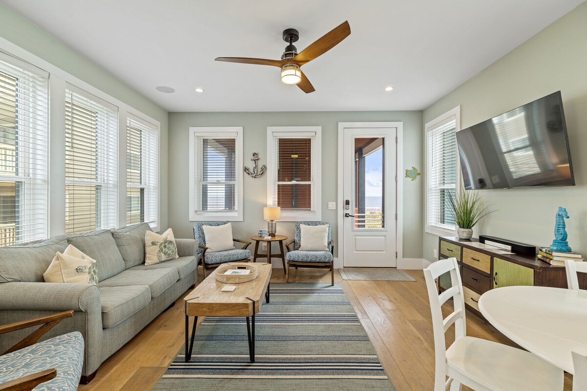 Ti diamo il benvenuto al Sunseeker! • Appartamento privato in un motel boutique sulla spiaggia recentemente ristrutturato, con terrazza privata con vista sull'oceano • A 3 minuti a piedi dalla spiaggia pubblica, con sedie a sdraio gratuite • A pochi passi dal lungomare di Kure Beach, adatto alle famiglie, con ristoranti, gelaterie e molto altro!