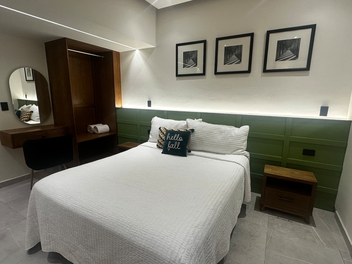 Questa elegante Depa si trova all'interno di una casa spaziosa e moderna, ideale per viaggi in famiglia, eventi e lavoro, si trova al secondo piano, comprende: - Letto king size (2 persone) - Divano letto 1 - Bagno esclusivo - Angolo cottura - Macchina del caffè, micro (forniture) -smart TV - scrivania - Maletero - Una sala da pranzo. PIANO TERRA: - Hall (area comune) - Patio e giardino - Luogo dell'evento (su prenotazione) - Parcheggio (richiesta disponibilità) SECONDO PIANO: - Atrio - Cucina - Lavanderia e stireria