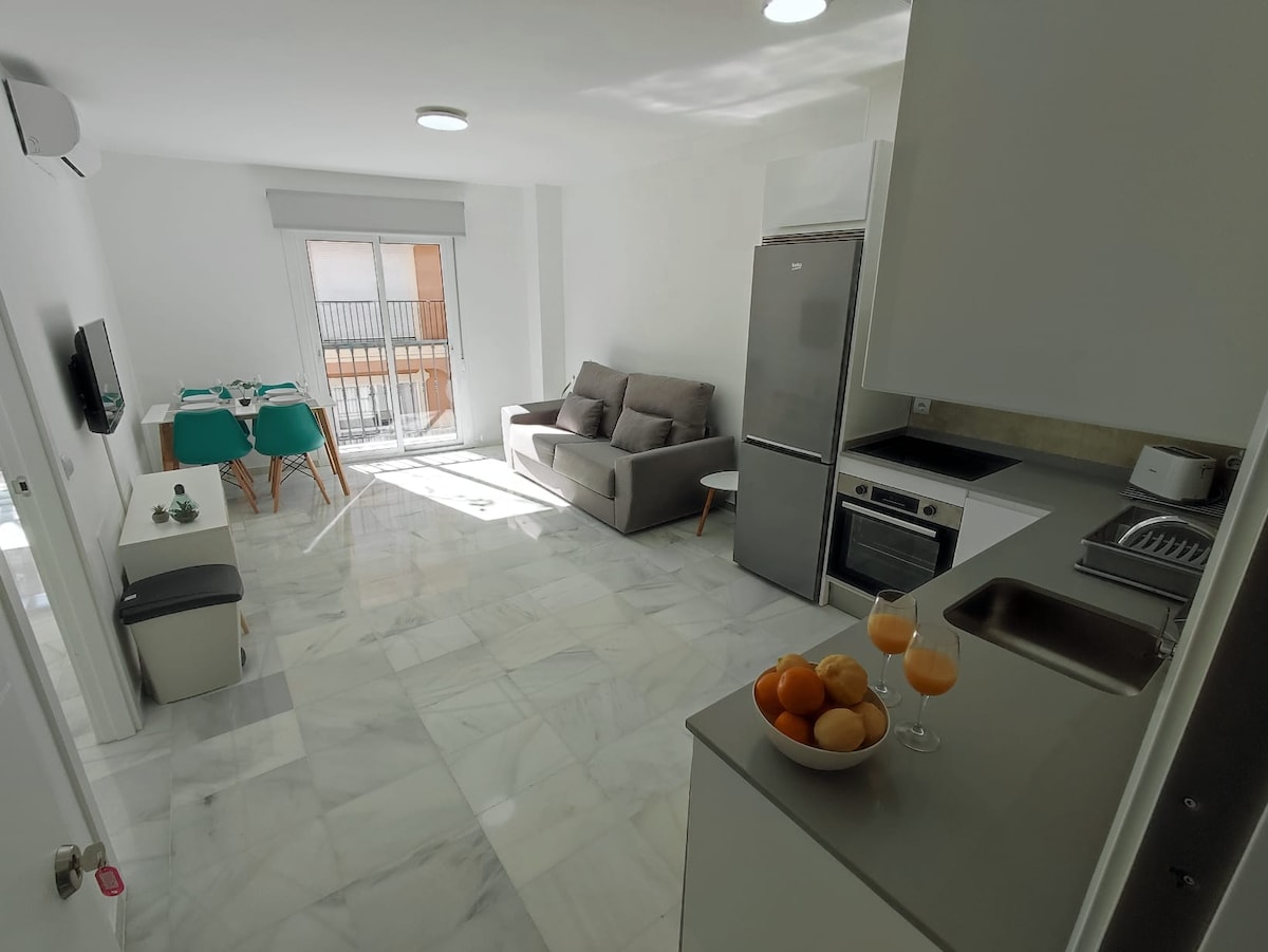 Impressive sights to the sea. 2 double bedroom apartment, facing the beach. Sun all day. Spectacular completely renovated apartment, first line of Fuengirola beach, large terrace of about 12m2 with panoramic views, on the 5th floor, quality, design and comfort, located in the best area of the city. High-quality kitchenware and apartment equipment. Large living room of about 25m2 with large sliding window towards the terrace. Free WiFi and Smart TV