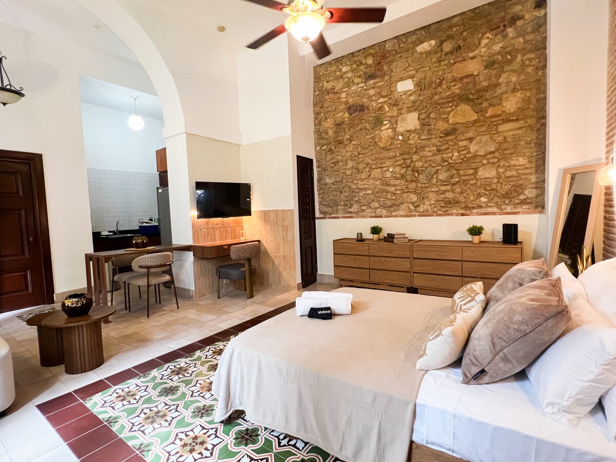 On the beach with direct access to the sea. Open space studio for 2 people. Living room / kitchen / bedroom 1 (Queen) / sofa / armchair / bathroom with shower, dedicated work space. Large, spectacular terrace on the gulf with bathtub convertible into a sofa. Comfortable, elegant, quiet, and safe. Large and fresh tree-lined garden with tropical fauna and flora. Hummingbirds, iguanas, sometimes monkeys and sloths etc ... Gym equipment, small pool. Perfect for recharging your batteries.