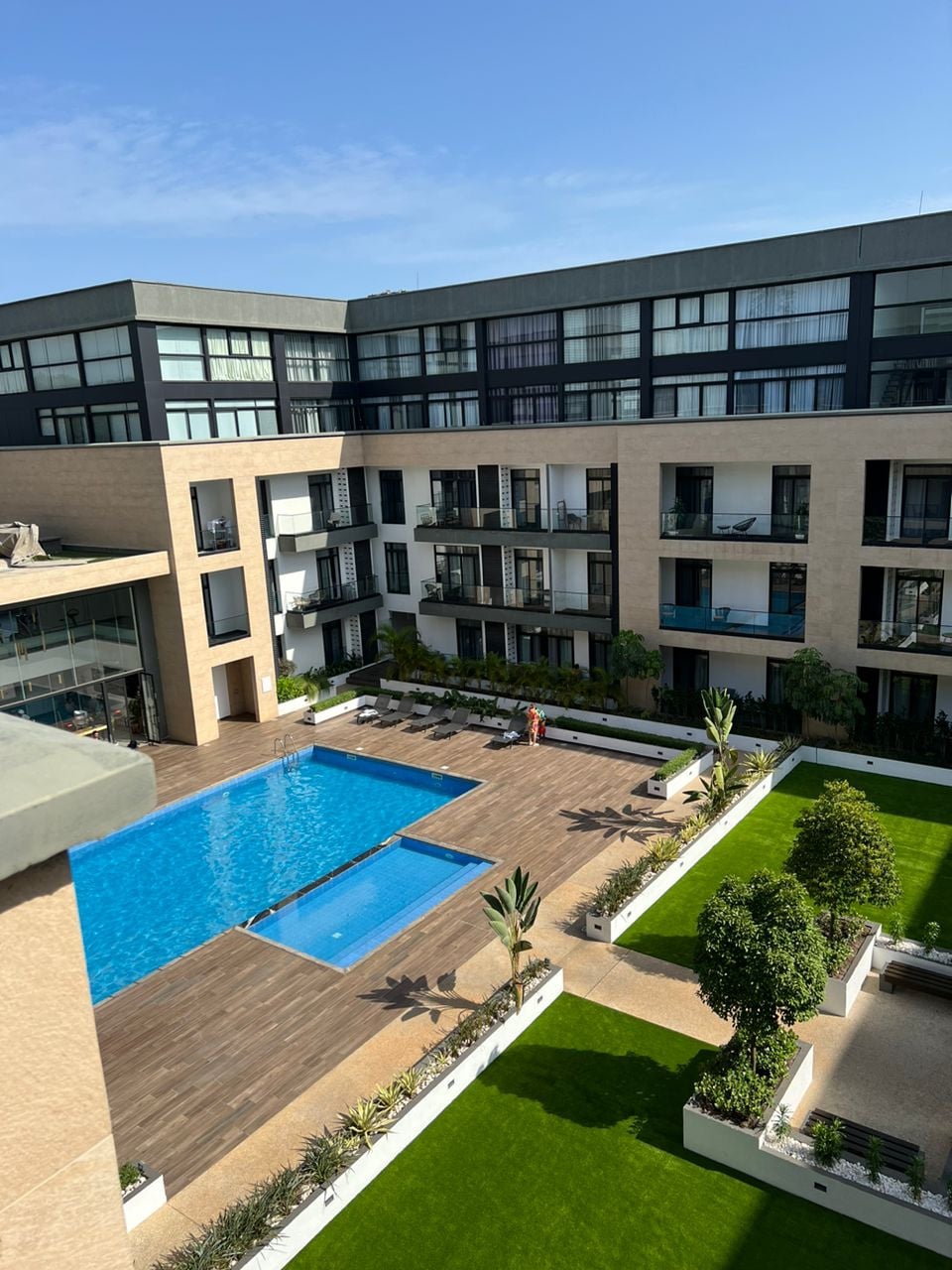 Appartamento di lusso con una camera da letto di 725 piedi e vista sulla piscina a Cantonments e vicino a ristoranti, locali notturni e centri commerciali. A ✔6 minuti dall'aeroporto e dall'ambasciata degli Stati Uniti ✔WiFis veloci e illimitati, TV HDTV intelligenti con DSTVe uno spazio di lavoro dedicato con Alexa Servizio di pulizia ✔gratuito con preavviso di 24 ore Consumo ✔gratuito di elettricità con generatore auto standby ✔Balcone esclusivo ✔Nekter Lounge & Sky Bar Sicurezza ✔24 ore su 24 ✔Piscina e palestra con sala yoga ✔Letto matrimoniale grande Serratura ✔sicura e diffusore Bluetooth ✔Cucina completamente attrezzata con macchina da caffè Nespresso
