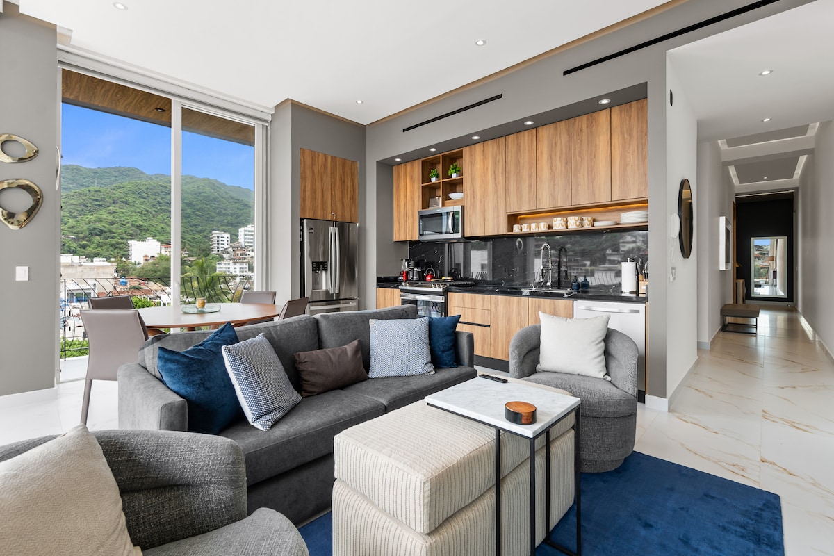Centro della Zona Romantica, cuore del centro storico di Puerto Vallarta, a due isolati dalla spiaggia di Los Muertos e dal lungomare di Malecon. Goditi la vivace vita notturna o rilassati sulla terrazza panoramica. Questa lussuosa unità offre agli ospiti i migliori servizi, come macchina per caffè espresso, TV da 75 pollici, grande fontana, aromaterapia e prodotti da bagno esclusivi in omaggio. L'appartamento offre una vista mozzafiato sulle montagne e sull'oceano. L'edificio dispone di piscina riscaldata, area barbecue e palestra.