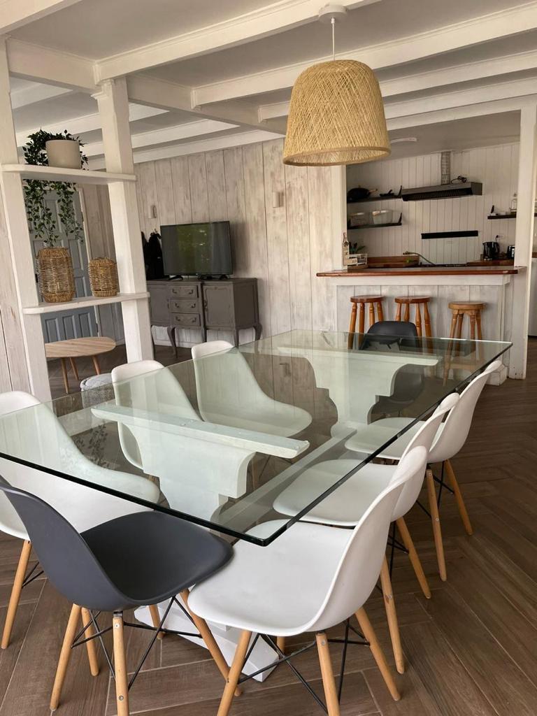Acogedora casa a una cuadra de la playa ideal para ir en familia. Cuenta con un amplio espacio común con cocina integrada y equipada con todo lo necesario para que en tu estadía puedas dedicar tu tiempo a descansar y pasarlo bien. Las camas de los 3 dormitorios cuenta con colchones nuevos de resortes y radiadores electricos. Cuenta con dos juegos de terraza para el exterior, un comedor al aire libre y parrilla.