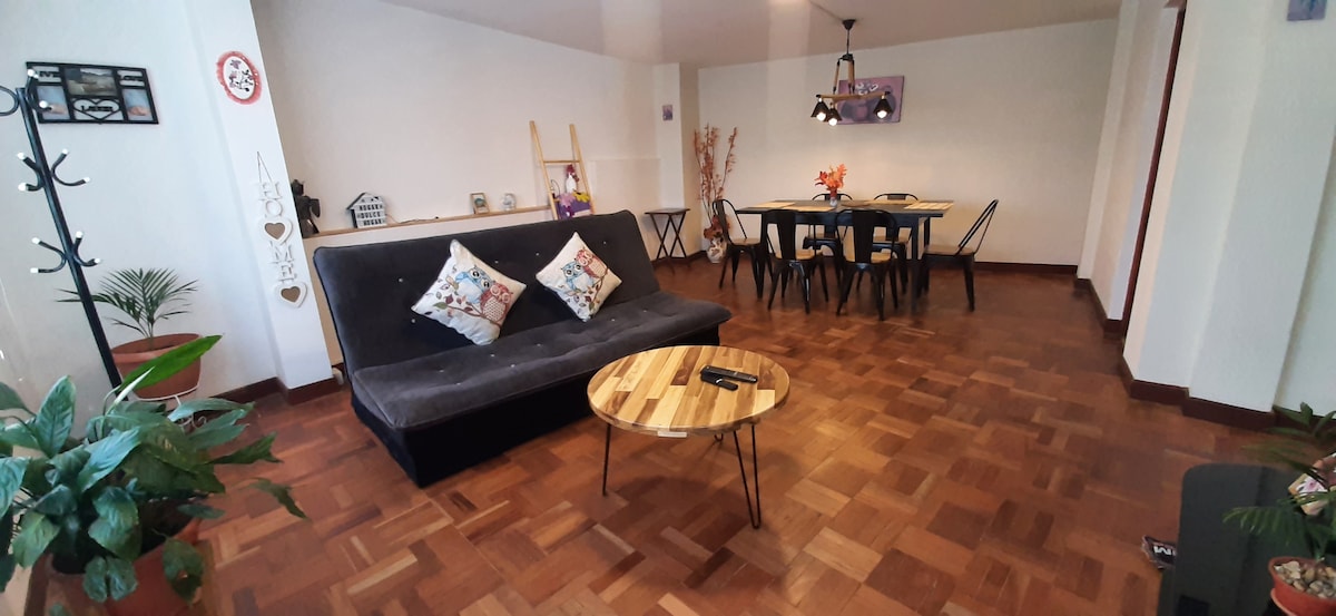Disfruta de la calidez de este departamento céntrico y acogedor en Sopocachi, zona muy segura y bohemia en una de las catalogadas ciudades maravilla, cerca de transporte público, a pasos del teleférico amarillo, uno de los atractivos turísticos, para viajeros de toda edad. Ubicada en un 1er piso, con ingreso independiente, consta de una confortable habitación con todo lo necesario para dos personas, Wi-fi, sala de estar con sofá muy cómodo, comedor, cocina, agua caliente y calefacción.