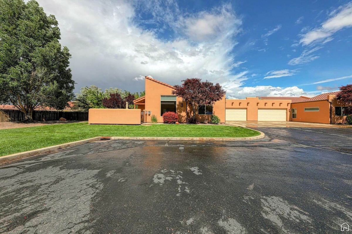 ✨ New December 2025! - Updated Bathrooms - new sinks and counters. - Refreshed Bedrooms with new flooring. ☀️ Bright and spacious single story 3 bedroom, 2 bath home minutes from downtown Moab. Surrounded by panoramic views and decorated in a warm Modern West style, this serene retreat is the perfect base for your desert adventure, whether you're hiking Arches, biking Slickrock, or off-roading nearby trails. Full kitchen, 2 car garage, long driveway, fast WIFI.