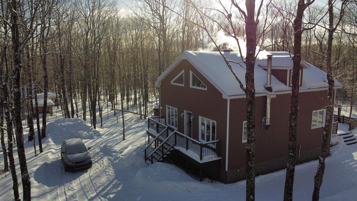 Notre superbe chalet de l'Ours saura vous combler. Tout équipé avec cafetière filtre(café + sucre fournis) spa BBQ( gaz fourni) feu exterieur( croute de cèdre fournie) foyer au bois( bois fourni l'hiver) Le chalet est situé au Domaine des Appalaches à 12 minutes des majestueux Mont Mégantic, Mont Gosford et à 30 minutes de Lac-Mégantic. ***Le réseau cellulaire ne fonctionne pas au chalet. *** possibilité de mettre votre téléphone en mode wifi Internet haute vitesse pour télétravail