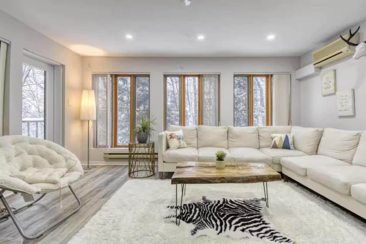 Prenditela con calma in questo spazio unico e rilassante. Situato direttamente sulle piste. IL MIGLIOR ACCESSO DIRETTO ALLE PISTE DA SCI A TREMBLANT. Questo appartamento con una camera da letto, aria condizionata (letto matrimoniale) e camino a legna può ospitare facilmente 4 persone ed è ben attrezzato per accogliere gli amanti delle attività all'aperto. Per quanto riguarda lo SKI-IN/SKI-OUT, tieni presente che ci sono circa 50 gradini dall'appartamento fino al sentiero Chalumeau, per iniziare o tornare dalla tua giornata sugli sci. CITQ #295941
