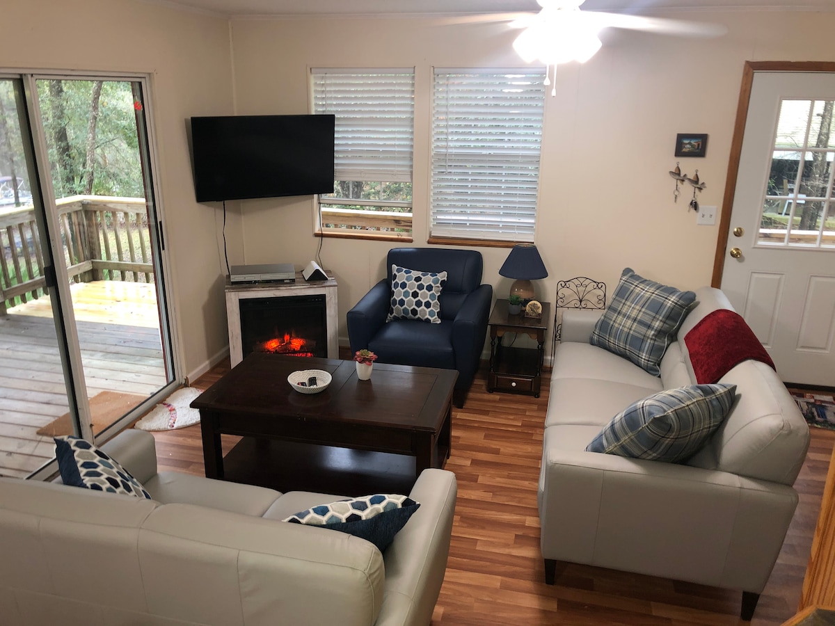 Nascosto in una tranquilla strada di campagna e ben adagiato lungo lo storico fiume Suwannee. Vieni a goderti la vecchia Florida mentre ti rilassi con tutti i comfort. Che tu venga per andare in kayak, pescare, esplorare l'abbondanza delle sorgenti locali, immergerti, cacciare, fare birdwatching o semplicemente sederti con un libro, qui troverai tutto ciò che cerchi. Due sorgenti poco conosciute si trovano direttamente dall'altra parte del fiume e sfociano nel Suwannee. Lancia i kayak dal molo privato e ti troverai a poche pagaiate di distanza. Vieni a riposare e ricaricarti.