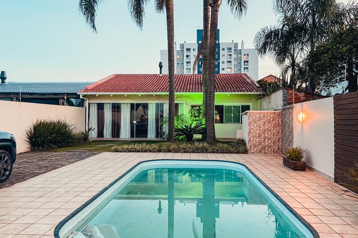 Casa a Lages, vicino al centro commerciale Lages (5 minuti di auto) e al Pinhão Festival (6 minuti di auto), con grill disponibile. Una casa accogliente in una posizione strategica per rilassarsi, vicino all'uscita per BR-282. Ideale per le famiglie, è perfetto per chi viaggia e ha bisogno di relax. In camera da letto è disponibile una TV da 43 pollici con Netflix, Max e Disney+. Nelle vicinanze ci sono un negozio di alimentari, una farmacia e un salone di bellezza.