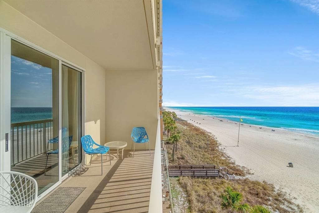 Splash Resort is Unique & The Best Family Beachfront Resort in PCB, FL. Complementary Aqua Park, Heated pools, Lazy River, Hot Tub, Gym Beach services, & more come with our condo! Our beautiful 1704E unit is 1BD/2BA (6 sleeps). We have a Beachfront living room! Big TVs! FREE Wifi, Crib, Beach Toys & more! The condo includes a KING-size bed, a twin bunk bed, a queen-size sleeping sofa, a fully equipped kitchen & more! The entire family can enjoy amazing views from the Direct Oceanfront balcony!