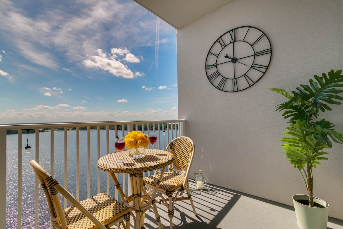 Completely renovated, coastal style condo w/ 2 balconies on the 16th floor. Enjoy the view, and the convenience of staying minutes from the excitement of Disney Parks/Springs, Universal Studios and more! When not at the parks, relax in this spacious condo w/ peaceful views of Lake Bryan. In the morning awake to the sunrise over the lake. In the evening, unwind on the opposite balcony to watch the sunset & fireworks. Take some time to relax in the pools & hot tub.