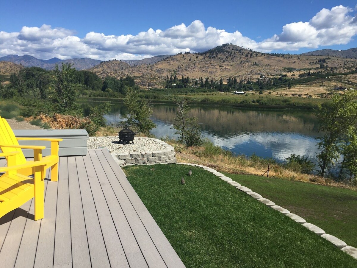 La nostra pensione Chelan Valley Farms offre una vista mozzafiato sul nostro vigneto, sul frutteto, sul lago delle rose, sulle montagne Cascade e sulle cantine, il tutto da ammirare rilassandosi sull'ampio portico coperto. Una camera da letto e un divano letto, può ospitare fino a 4 persone. Situato in una fattoria funzionante, potresti vedere un trattore e i nostri 3 simpatici cani potrebbero volerti dare un bacio al tuo arrivo. Viviamo nella fattoria e saremo felici di aiutarti per qualsiasi necessità durante il tuo soggiorno. Vieni a rilassarti. Visita ChelanValleyFarms