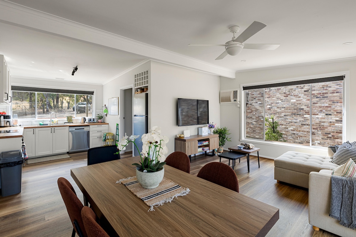 Omaroo, che significa "bella vista", è un cottage di campagna di 2 ettari con vista panoramica sui terreni agricoli di Bonnie Doon e sulle Strathbogie Ranges. Nuota nella piscina della fattoria in estate, esplora il lago Eildon, il Great Victorian Rail Trail o dirigiti verso il monte Buller per sciare in inverno. Mansfield, a breve distanza in auto, offre ottimi ristoranti e negozi. I tuoi host, Keren e Jon, risiedono nella fattoria adiacente e sono felici di condividere consigli locali