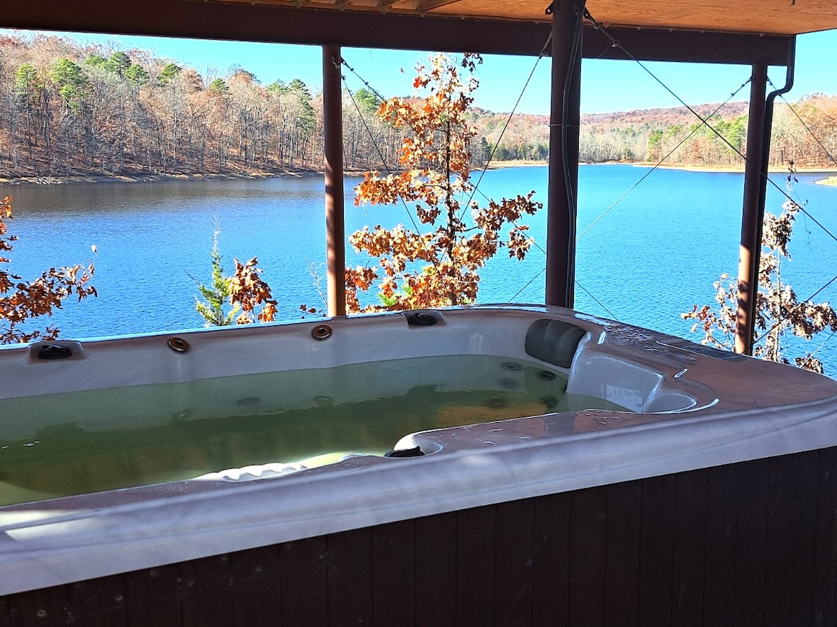 Questa casa sul lago presenta interni spaziosi e aperti con mobili artigianali personalizzati, che aggiungono fascino rustico e atmosfera. Con una cucina completamente arredata, avrai tutto il necessario per preparare deliziosi pasti durante il soggiorno. La grande camera da letto padronale è la fuga romantica perfetta, mentre l'accogliente seconda camera da letto è ideale per bambini o ospiti aggiuntivi. Siediti nella tua vasca idromassaggio privata e goditi il tramonto o esplora uno dei migliori ranch del Missouri!