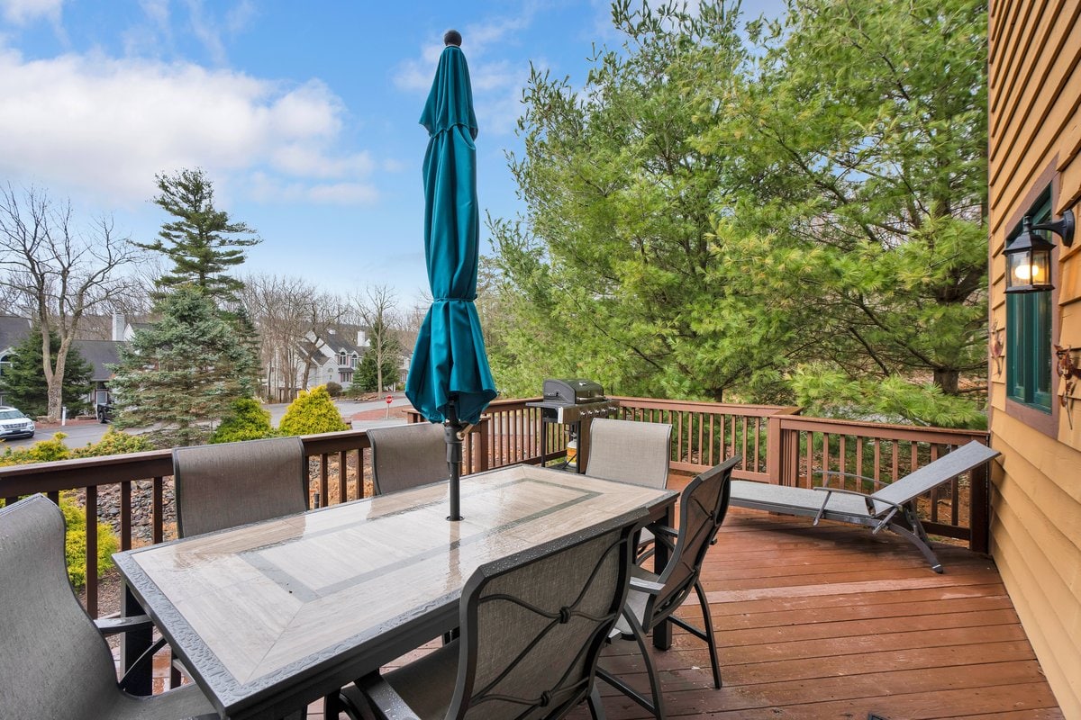 Immersa tra alberi e massi, questa casa in stile chalet offre bellezza naturale e comfort durante il tuo soggiorno sulle Poconos. Una destinazione per tutte le stagioni, che permette agli ospiti di godere della vicinanza alle piste da sci in inverno, delle escursioni in primavera, delle gite in barca in estate e del vivace fogliame autunnale. La casa vanta ampie finestre e un accogliente soggiorno con un grande camino in pietra. Le ampie camere da letto e lo studio possono ospitare facilmente un gruppo numeroso.