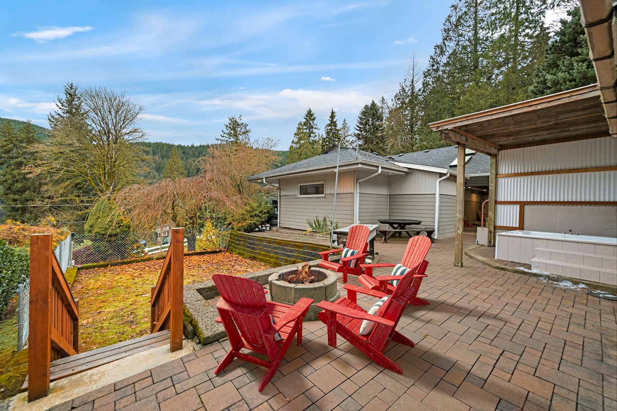 Casa con tetto a spiovente circondata dalla foresta, con vasca idromassaggio, camino e braciere: perfetta dopo aver osservato le foglie o percorso i sentieri epici di Galbraith e Lookout Mountain nel nostro cortile. Due camere da letto con letti queen size sotto lucernari, cucina completa, Wi-Fi veloce e una terrazza per godersi l'ora d'oro. Ristorante Fairhaven nelle vicinanze. ~1 ora al Monte. Baker Ski Area. Prenota subito le date autunnali: migliori tariffe infrasettimanali.