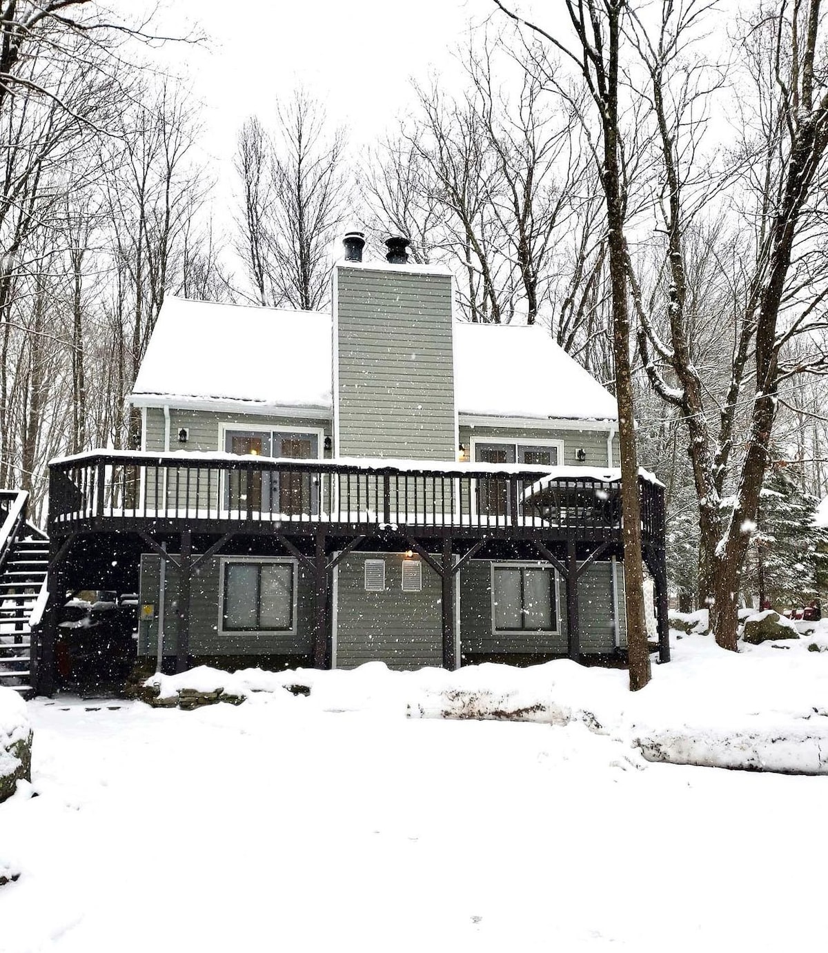 Immergetevi nella miscela perfetta di serenità e romanticismo nella nostra baita di legno completamente rinnovata a Poconos. Offre un'atmosfera riservata, pur essendo situato in un quartiere sicuro. Rilassati nel divano letto del nostro soggiorno, mentre ti godi la vista sul cortile e sulla foresta attraverso la gigantesca finestra panoramica. Rilassati nella vasca idromassaggio o vicino al focolare, dove si creano i ricordi! In posizione centrale, lo chalet offre l'accesso a stazioni sciistiche e sentieri escursionistici. Come ospiti, potrete inoltre accedere al lago, alla piscina e ai campi sportivi.