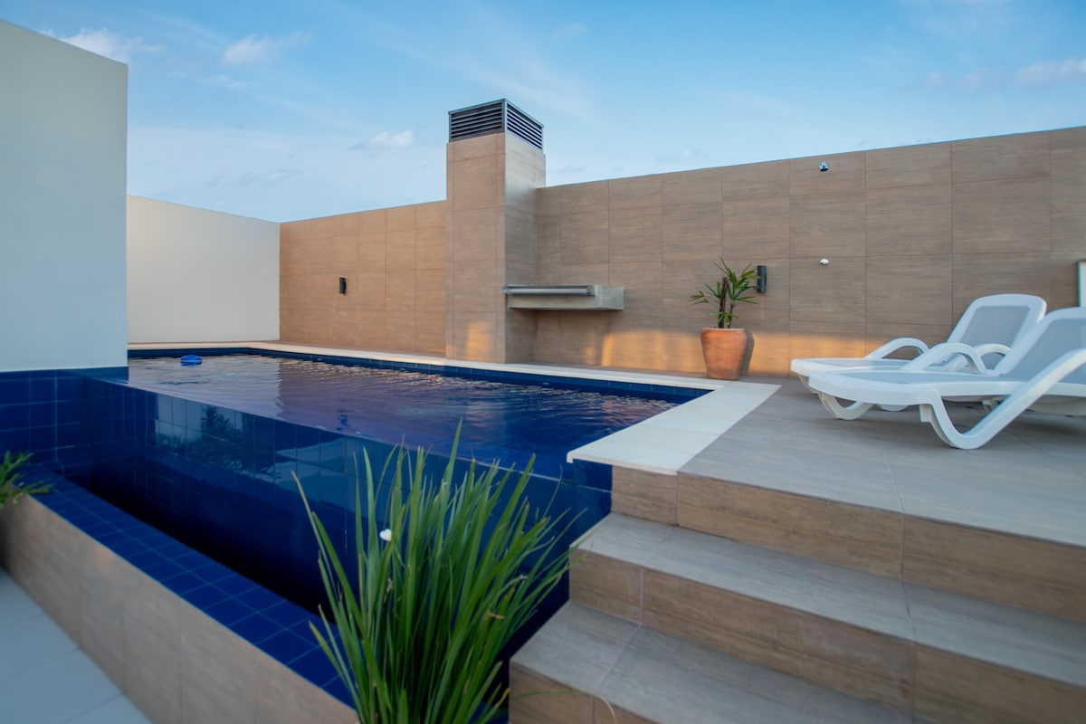 La tua vacanza con una splendida vista. Goditi questo appartamento moderno e luminoso, ideale per riposare o lavorare in totale comfort. Situato in una zona sicura e ben collegata, a 20 minuti da tutto ciò di cui hai bisogno. Lo spazio dispone di un garage privato e di accesso a una terrazza con piscina per rilassarsi a fine giornata. Offre anche un letto comodo, cucina attrezzata, WiFi, lavatrice e aria condizionata. Perfetto per coppie, chi viaggia da solo o per chi viaggia per lavoro. Il tuo alloggio ad Asunción ti aspetta!
