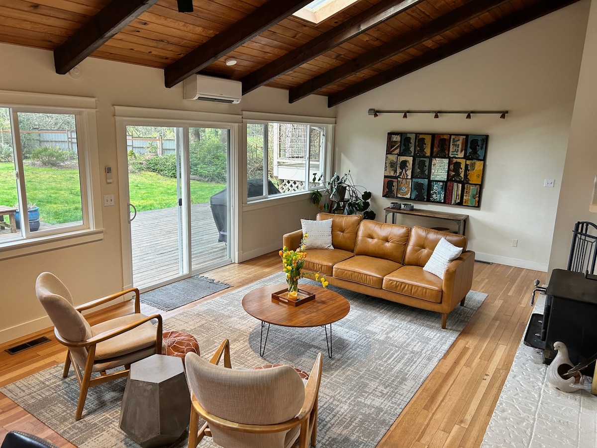 Esplora, rilassati e scopri l'affascinante villaggio balneare di Langley, sull'isola di Whidbey. Il nostro moderno appartamento nel centro di Langley presenta un mix di arredi moderni di metà secolo di alta qualità con opere d'arte contemporanee. La camera principale e quella degli ospiti presentano letti di altissima qualità e biancheria di lusso. Nel soggiorno, accomodati vicino al camino o cucina un pasto gourmet nella nostra cucina di fascia alta completamente attrezzata. Accanto al soggiorno c'è un balcone privato che si affaccia su un tranquillo spazio verde.
