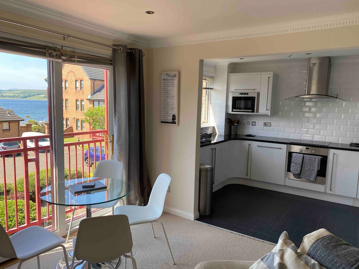 Questo bellissimo appartamento con due camere da letto offre alcune delle migliori viste, su Arran, Cumbrae, Wee Cumbrae, Bute e Argyll. L'alloggio dispone di un bagno con doccia interno e di un bagno molto spazioso con doccia a soffione. La cucina e il soggiorno sono a pianta aperta, per cui lo spazio è ampio e consente di godere di una vista mozzafiato. Questo è un appartamento perfetto per una vacanza, a 5 minuti dalla città e dal traghetto per Millport. A soli 100 metri dalla spiaggia, si trova davvero nella posizione perfetta.