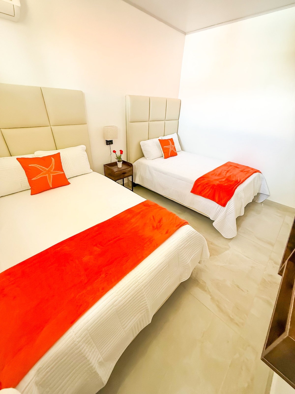 Esta lujosa y finamente decorada habitación perfecta para un disfrute único en Tela decorada con un toque playero con colores vivos te hará sentir en el caribe en casa a tan solo pasos de la playa. Vive la fusión de belleza y modernidad en un ambiente privado y seguro. Ubicación céntrica con tiendas y restaurantes, bares, farmacias, supermercados y mas a menos de 5 mins en auto.