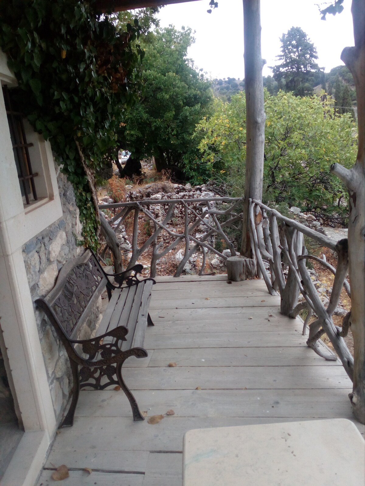 Nella verde natura montana di Ano Symi, vicino al fiume, sulla roccia, sotto un platano secolare. Architettura unica con pietra e legno, balcone in legno con vista a 360° sulla natura verdeggiante e sul mare, silenzio assoluto, ideale per gli appassionati di escursioni, per la calma e l'ispirazione degli artisti e per fuggire dalla vita di tutti i giorni in un piccolo paradiso. Accanto alla chiesa bizantina (1453 Manuel Fokas) e a breve distanza dal santuario di Hermes (Medio Minoico III-b)