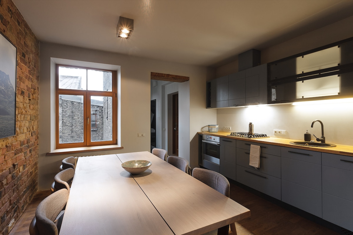 A cozy design loft in the heart of Liepāja Old Town — perfect for a relaxing seaside getaway or a romantic weekend escape. Warm evening light, exposed brick walls, and a calm, stylish atmosphere make this a place to slow down and unwind.