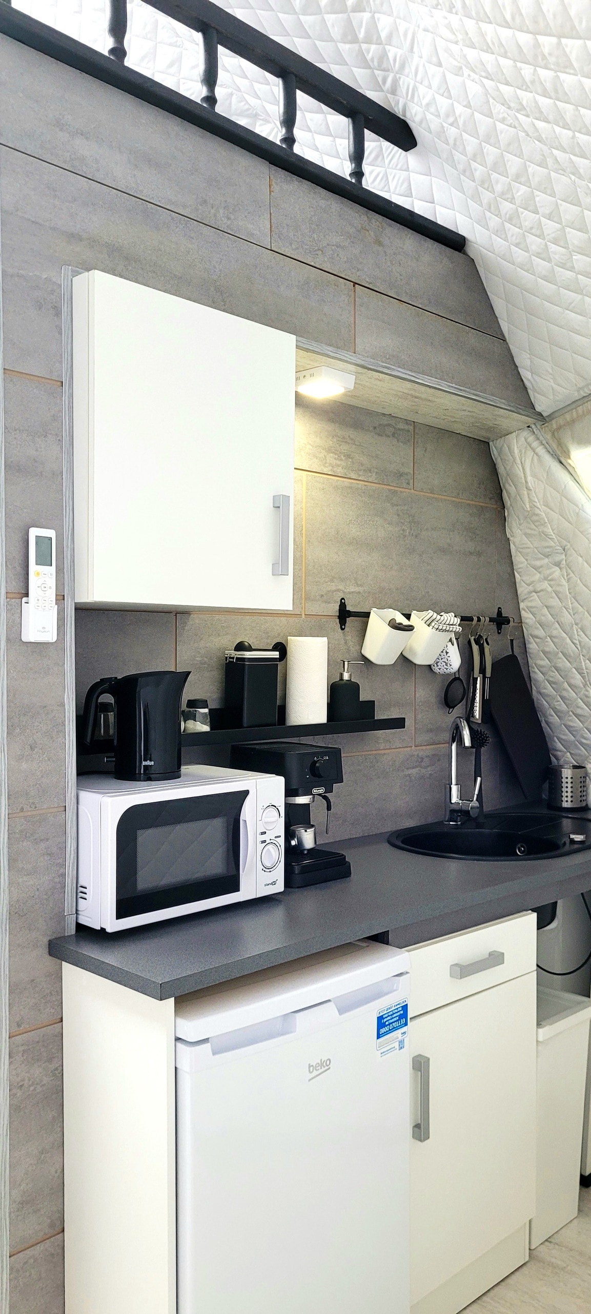 Inside our cabin, you’ll find everything for a comfortable stay: ❄️ Air conditioning for perfect temperature all year round 🍳 Fully equipped kitchen to cook your favorite meals 🚿 Modern shower and toilet 🛋️ Bright, clean interior designed for comfort and simplicity Tucked away in a quiet, private area right next to a river and just 300m from the beach, this home offers the ideal escape for couples, families, or solo travelers looking to relax, recharge, and reconnect with nature.