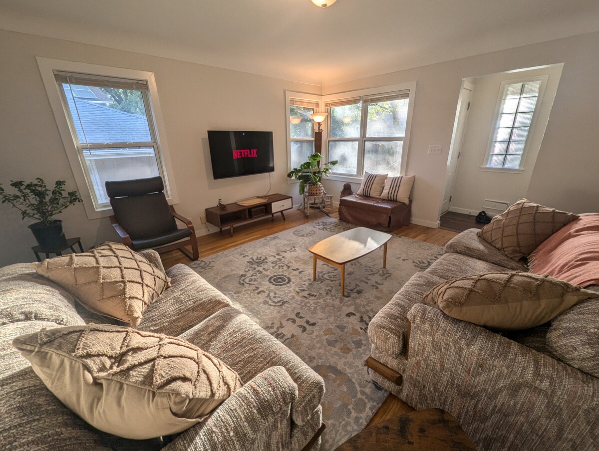 Benvenuti nel nostro incantevole monolocale al 3° piano, situato all'interno di una casa vittoriana nel cuore del quartiere artistico di NE! Questo accogliente rifugio vanta un'abbondanza di luce naturale che scorre attraverso lucernari, illuminando uno spazio adornato da splendide piante, creando un'atmosfera serena e invitante. Questo delizioso rifugio dispone di un caldo caminetto perfetto per rilassarsi nelle serate fredde. Si prega di notare che c'è un certo poco spazio vicino alla testa del letto e nella zona bagno/cucina.