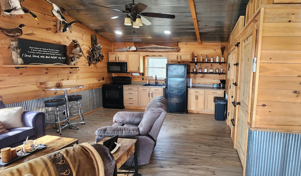Il Driftwood è una baita appartata che si trova su 3 acri lungo il fiume 11 Point. La cabina dispone di una camera da letto con letto king size e un letto a castello situato nel corridoio. C'è anche una zona soggiorno, una cucina completamente rifornita e una lavatrice/asciugatrice. Wi-Fi gratuito con smart TV. La vasca idromassaggio è aperta tutto l'anno. C'è un focolare all'aperto con alcuni posti a sedere in dotazione. **LEGNA DAARDERE disponibile **1 pacchetto $10** **Gli animali domestici sono i benvenuti con un supplemento di 50 USD * **OUTFITTERS disponibili nelle vicinanze**