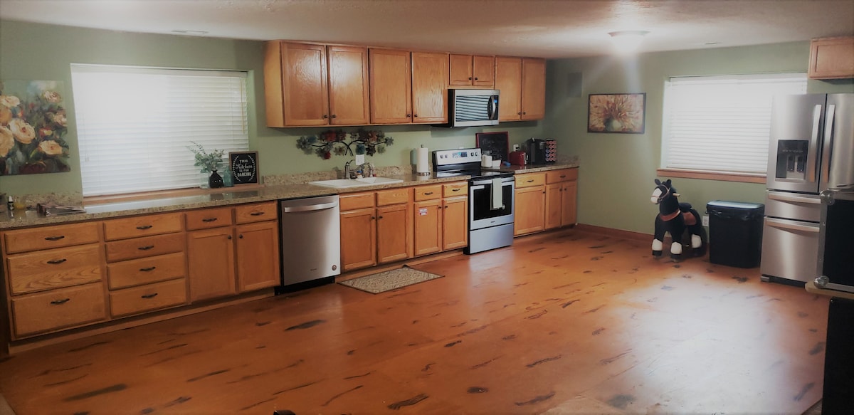 Il nostro spazioso appartamento nel seminterrato, recentemente ristrutturato, è un'ottima scelta per famiglie, amici o chiunque cerchi una casa lontano da casa. Entra attraverso il tuo ingresso privato senza chiavi. Il nostro appartamento ha una sala da pranzo, una cucina e un soggiorno open space. La cucina è completamente attrezzata con elettrodomestici nuovi di zecca. Gli armadi sono riforniti di articoli da cucina e da pranzo. La zona giorno offre ampio spazio per riunirsi per giocare, conversare o guardare la TV sul monitor SmartTV da 65".