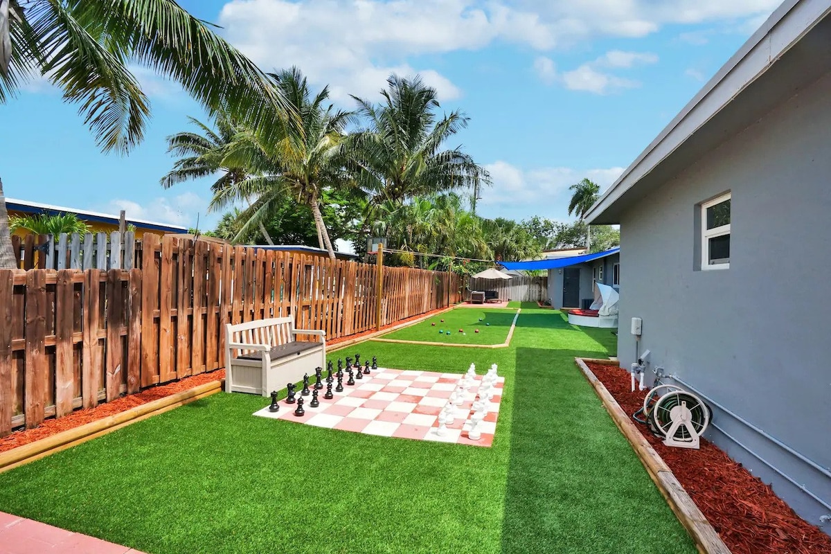 Benvenuti a The Frolics, un elegante rifugio con 2 camere da letto a Wilton Manors con piscina privata, giardino lussureggiante e soggiorno all'aperto in stile resort. A pochi minuti dalle spiagge di Wilton Drive e Fort Lauderdale, questa casa offre una cucina completamente attrezzata, Wi-Fi veloce, smart TV e parcheggio. Rilassati a bordo piscina, cucina sul barbecue o esplora il vivace quartiere. Perfetto per coppie, piccoli gruppi e viaggiatori LGBTQ+.