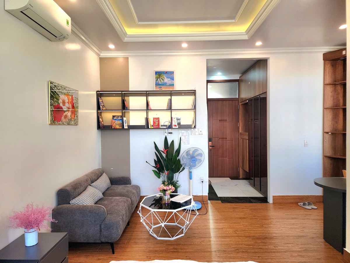 Căn hộ khép kín với phong cách wabisabi với đủ công năng từ điều hoà, tivi, máy giặt, lò vi sóng... đủ đáp ứng nhu cầu sinh hoạt cho khách hàng lưu trú ngắn ngày và dài ngày. Phòng ngủ với cửa khoá riêng, tuyệt đối riêng tư và yên tĩnh. Đệm cao su non dày 20cm, êm ái và thoải mái. Phòng khách với sofa bọc nhung, mịn màng, tivi màn hình phẳng cỡ lớn đã kết nối các tài khoản netflix... Phòng bếp được trang bị đầy đủ: Bàn ăn, bếp từ đôi, lò vi sóng, máy rửa bát, nồi lẩu, bát đũa, xoong nồi...