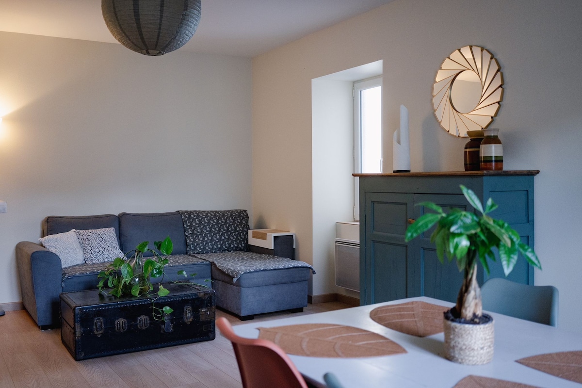 Semplifica la tua vita in questo alloggio tranquillo e centrale. situato in posizione ideale, parcheggi gratuiti in loco, questo appartamento duplex di 70 m2 completamente ristrutturato e attrezzato per 4 persone. Primo livello: un doppio spazio di lavoro, uno spogliatoio e un ampio soggiorno con cucina e soggiorno Un divano letto. Lavastoviglie. Lavatrice nella dispensa. WC. al piano superiore, 2 camere da letto ( 1 letto da 160, e 1 letto da 140 ) un bagno con doccia.