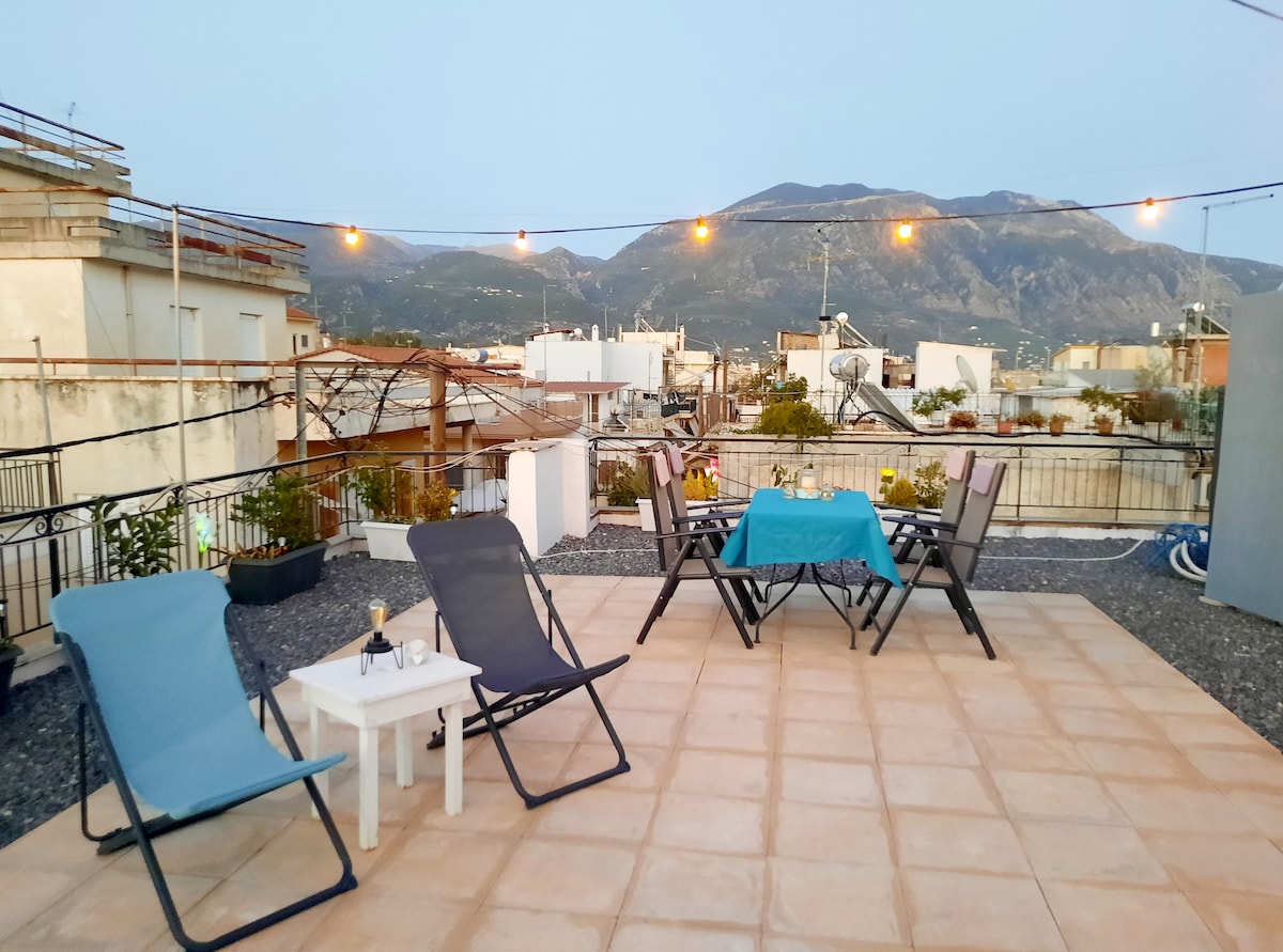 Ti diamo il benvenuto a Kalamata! La casa dista solo 15 minuti dal centro di Kalamata e solo 5 minuti dall'aeroporto. Ha una terrazza enorme, è accogliente e si accettano animali domestici. È perfetta per coppie o per una persona sola. Abbiamo aggiunto il wifi e un nuovo letto matrimoniale! È arredata, moderna, dipinta di fresco e vanta una splendida vista sulle montagne. Riceverai: Un caloroso benvenuto! Caffettiera, fornelli, frigorifero e wifi Asciugamani puliti, lenzuola, articoli per l'igiene di base Privacy Tranquillità Ambiente adatto agli animali domestici aria condizionata