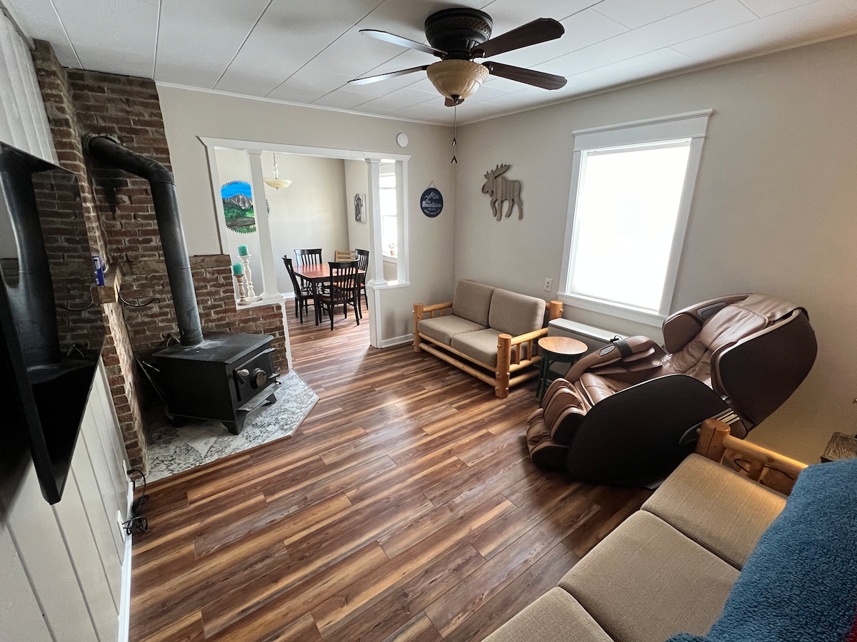 Rilassati in questa casa in stile chalet del 1932, splendidamente restaurata. Questa accogliente casa situata a Challis, in Idaho, è il luogo perfetto per rilassarsi, rallentare e distendersi. Per chi cerca l'avventura, è la base ideale. Siamo a circa 30 minuti di auto dalle sorgenti termali di Gold Bug. A pochi passi da ristoranti, bar e dalla biblioteca. Un grande negozio dell'usato si trova proprio dall'altra parte della strada! C'è una sorgente locale dove è possibile riempire le bottiglie con acqua fresca.