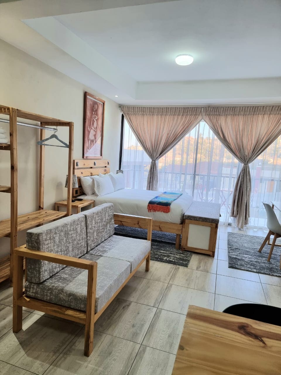 Thabeng è un rifugio nel cuore di Maseru , in Lesotho. Skyline con vista sul centro città, sul Lancer's Gap, sull'altopiano di Sehlabeng e sulla finestra che si apre sulla catena montuosa di Thaba-Putsoa